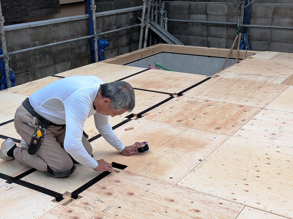 全てのパネルを設置した後は、気密テープでつなぎ目を埋めていき完了します。