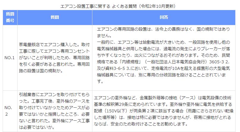規定どおりでなくても違法性はなく、リスク管理は使用者に委ねられています経済産業省ホームページにもエアコン工事のQ&Aがありますが割と曖昧に書かれていますね