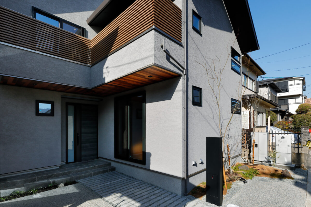 豊中市の○様邸では、南面窓からの日射取得と深い軒を組み合わせることで、